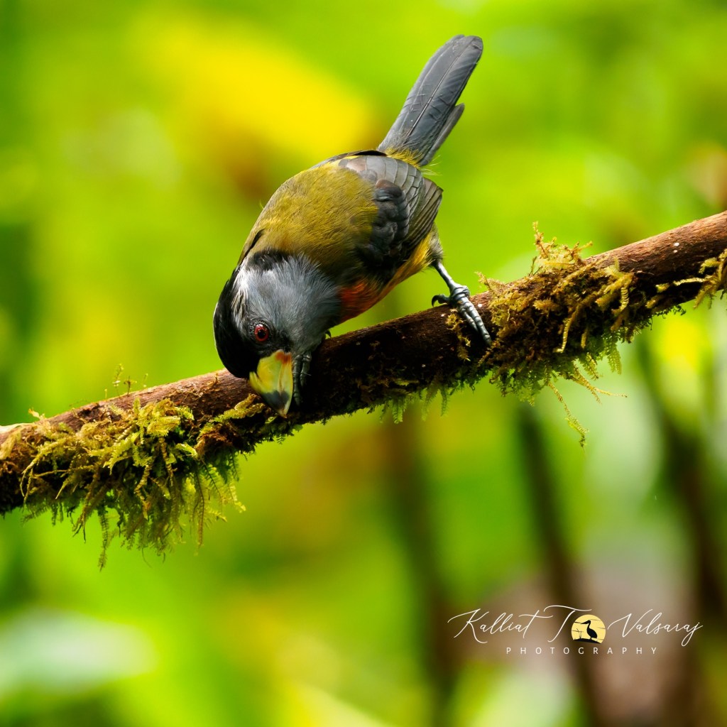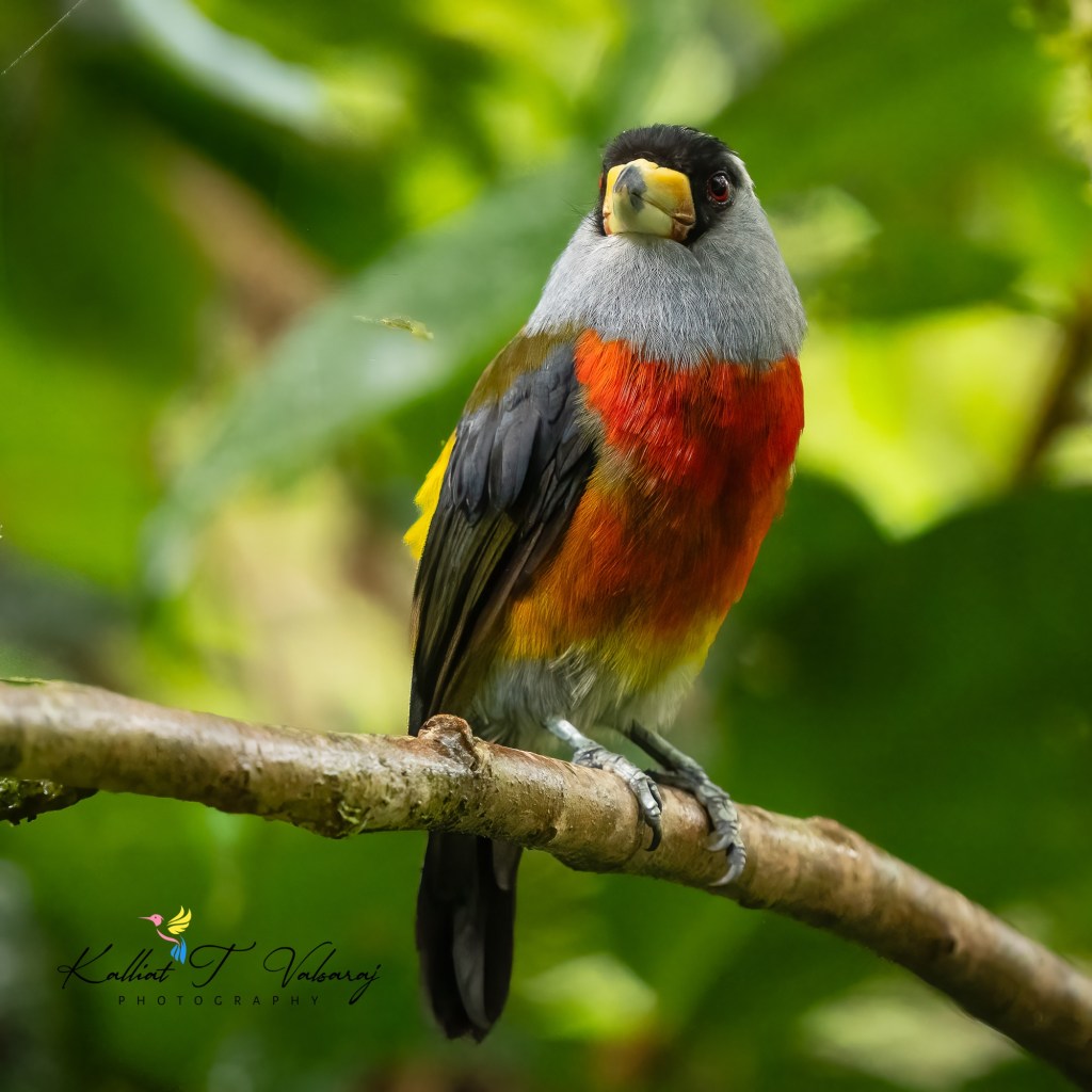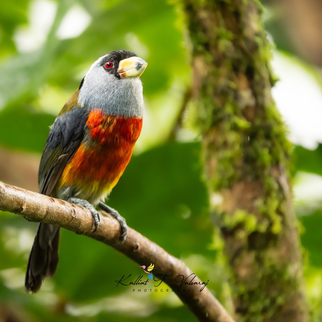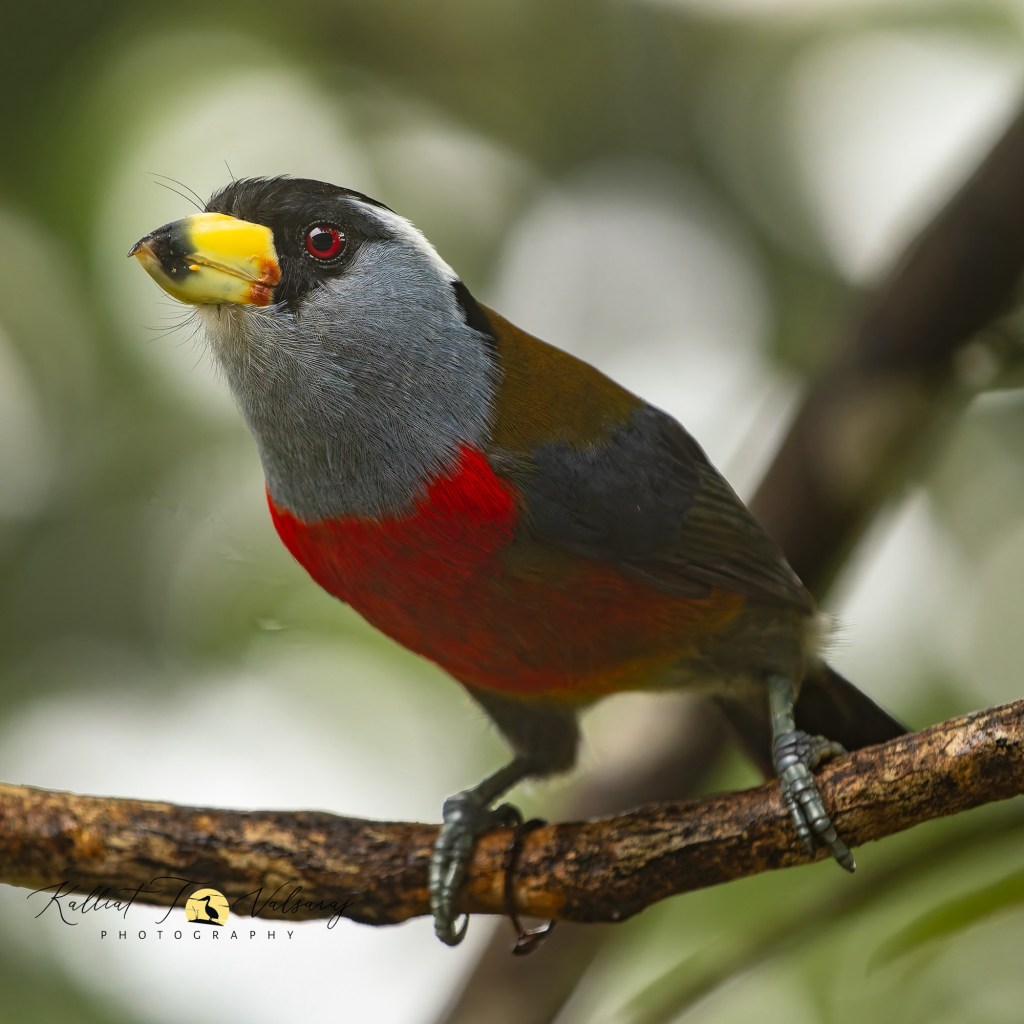 With its gray throat and tail, reddish eye, white eyebrow, red breast and belly, greenish-yellow back, black cap, and a stout yellow bill with a black tip, the Toucan Barbet is a true beauty to behold. 🌈🐦